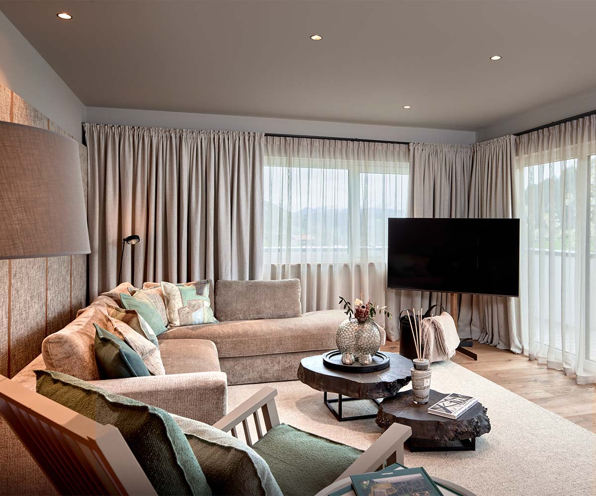 Surrounded by alpine nature and entirely private, the Privilege Mountain Chalet Suite invites you to unwind in a refined, discreet setting with panoramic mountain views. Here, quiet sophistication meets a sense of calm, clarity and personal space.