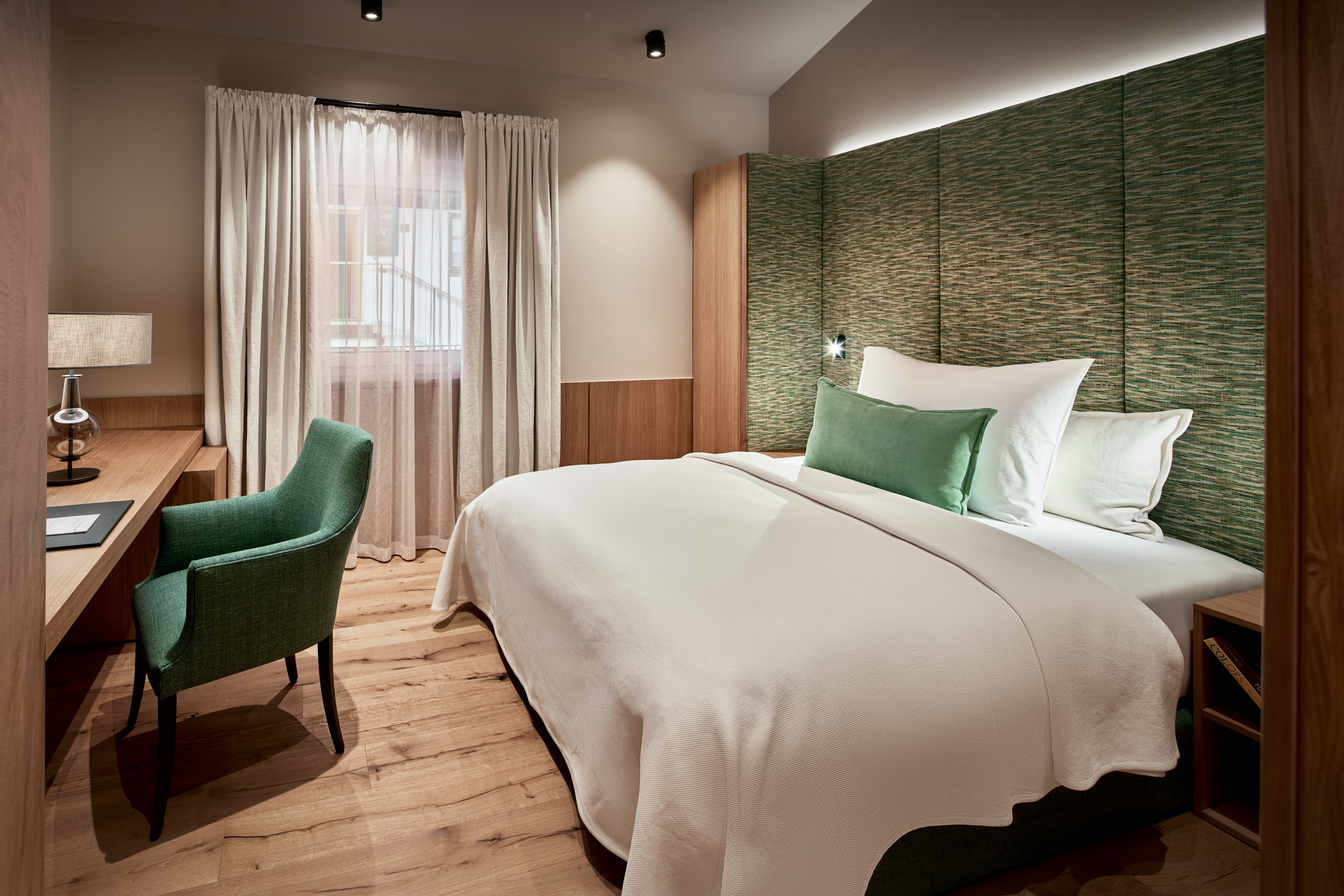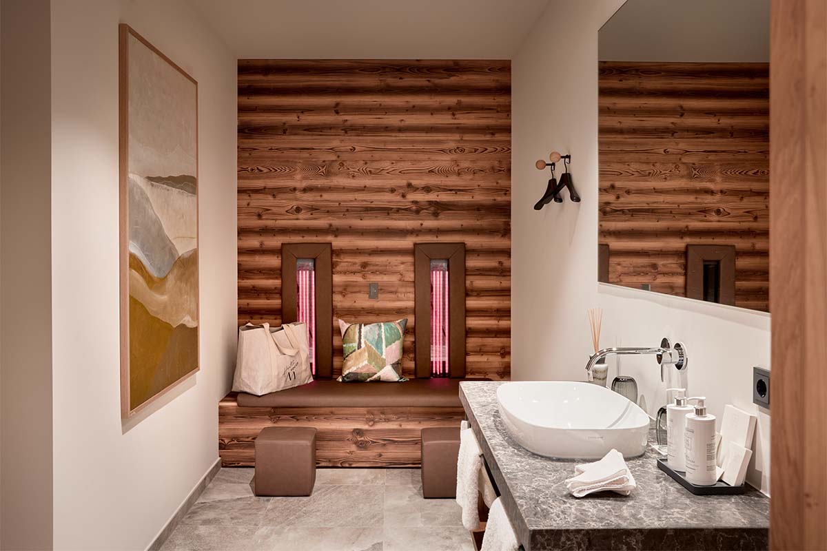 Spanning 115 m², each suite offers a serene alpine retreat defined by architectural clarity and thoughtful design. Elevated above the resort and accessed via external staircases, the layout ensures a protected environment where design and wellness expertise are seamlessly integrated.